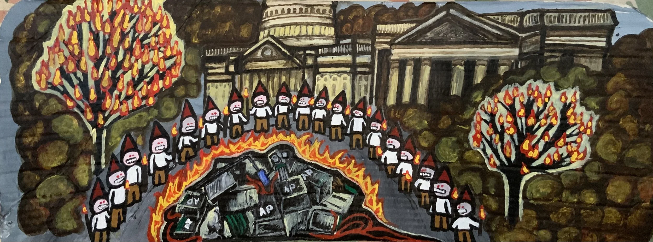 a key feature of fascism, consistent across time and place, is the destruction of news media that does not uplift their ideology. the insurgents who stormed the capitol destroyed the associated press’ equipment by throwing it in big heap and setting it on fire.